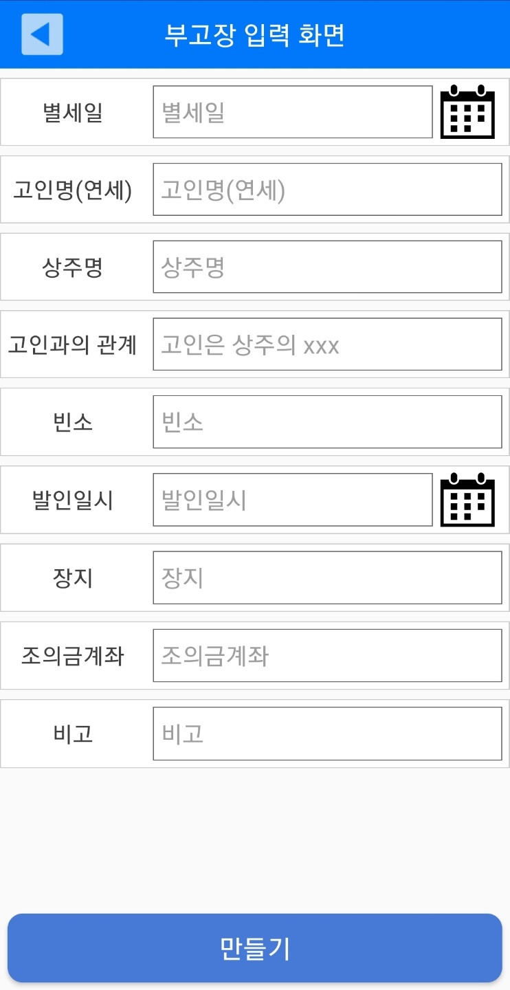 부고장 알림 형식이 되있어 간단하게 만드실수있습니다