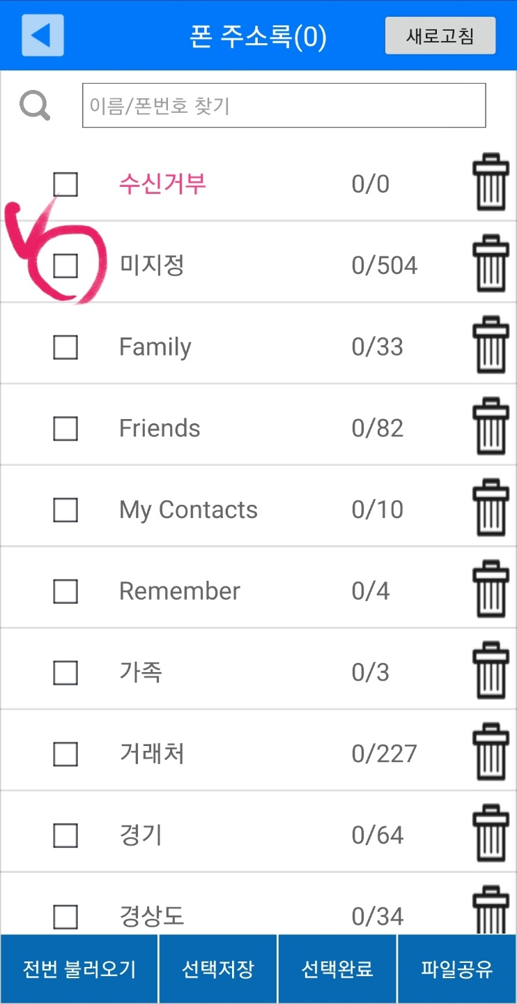 보통의 경우 전화번호 저장시 그룹을 만드시지 않아