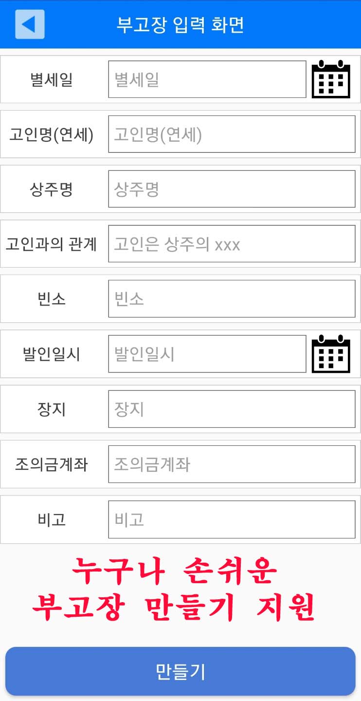 부고장 단체로 발송하는 앱 "알려주오"입니다.